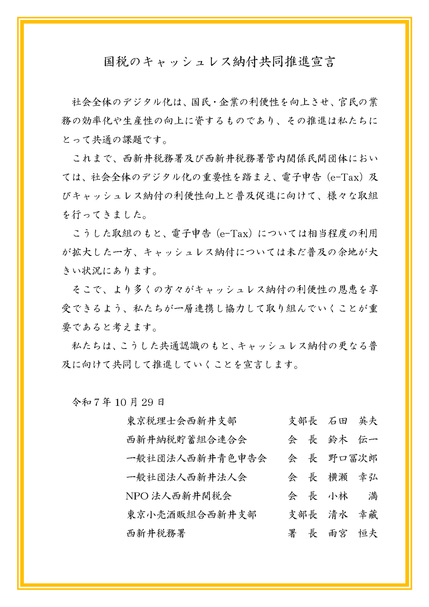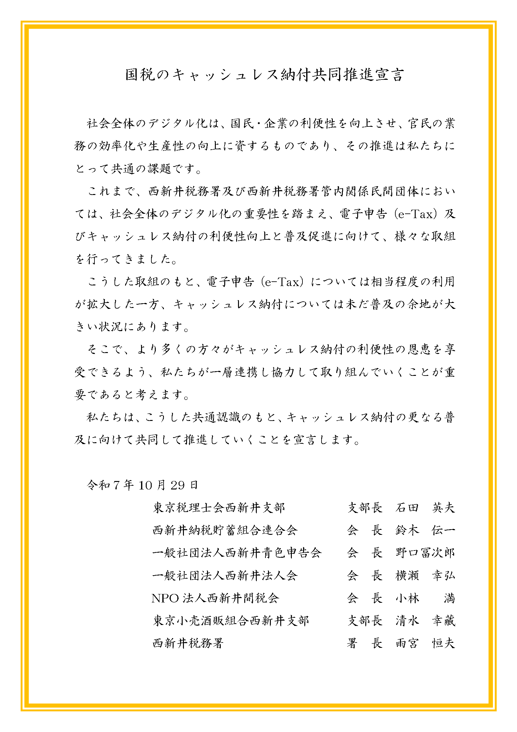 キャッシュレス納付共同推進宣言