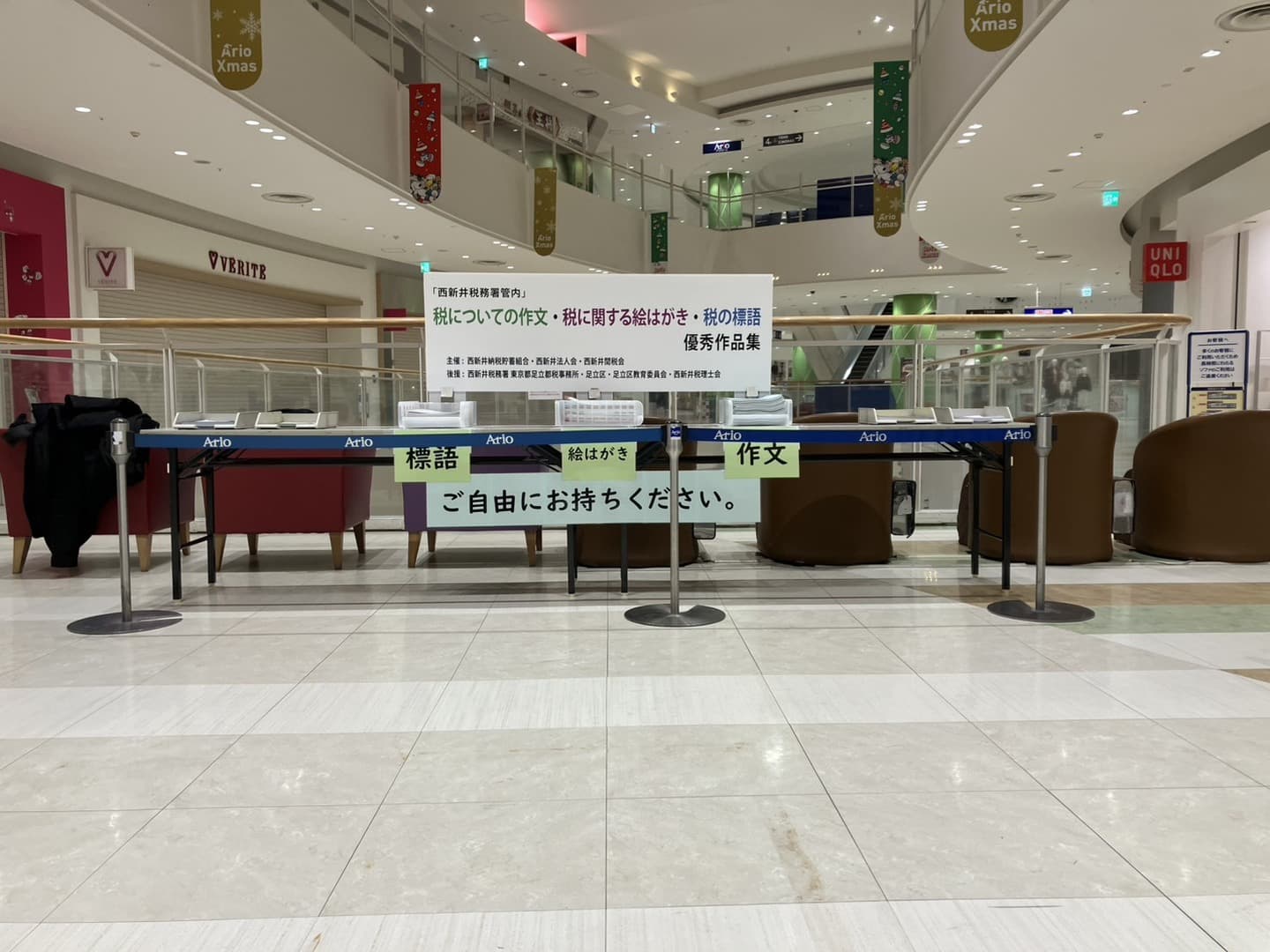 西新井アリオにて「税の標語入賞作品一覧」を配布します。